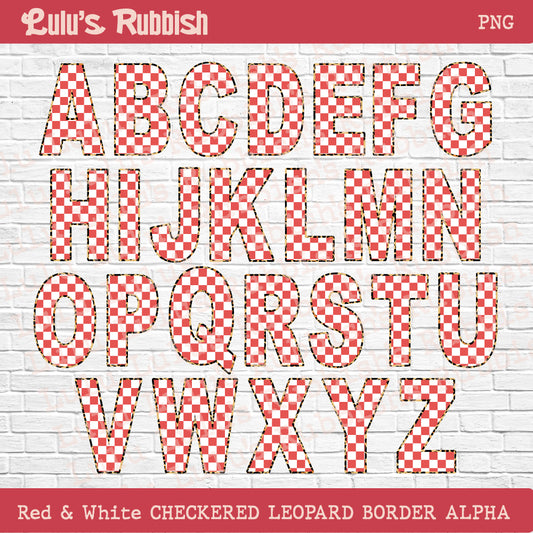 Red & White Stretch Checkered Leopard Border Alphabet PNG | Printable Letters Digital Download