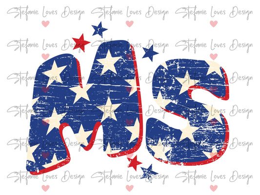 Mississippi MS Star Distressed Patriotic Design, Mississippi png, American Digital Download