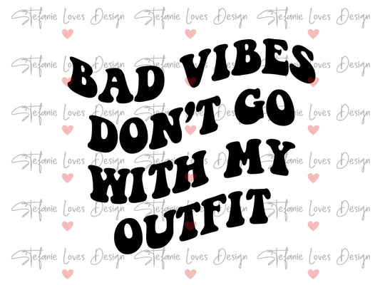 Bad Vibes Don't Go With My Outfit svg, Wavy Letters Svg, Digital Design