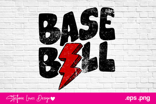 Baseball Red Bolt Grunge Digital Design