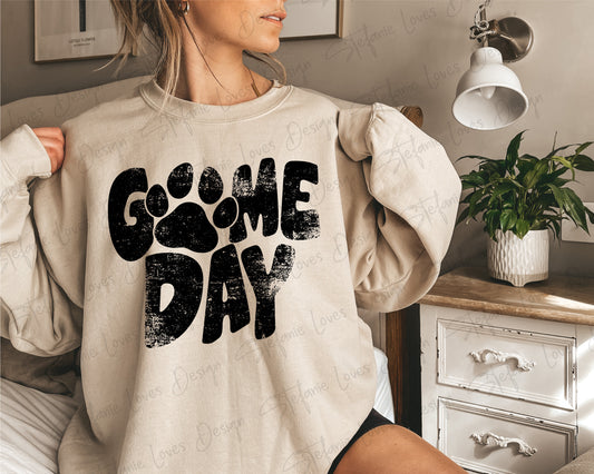 Game Day Paw png, Distressed Game Day png, png, Digital Design Black and White Version