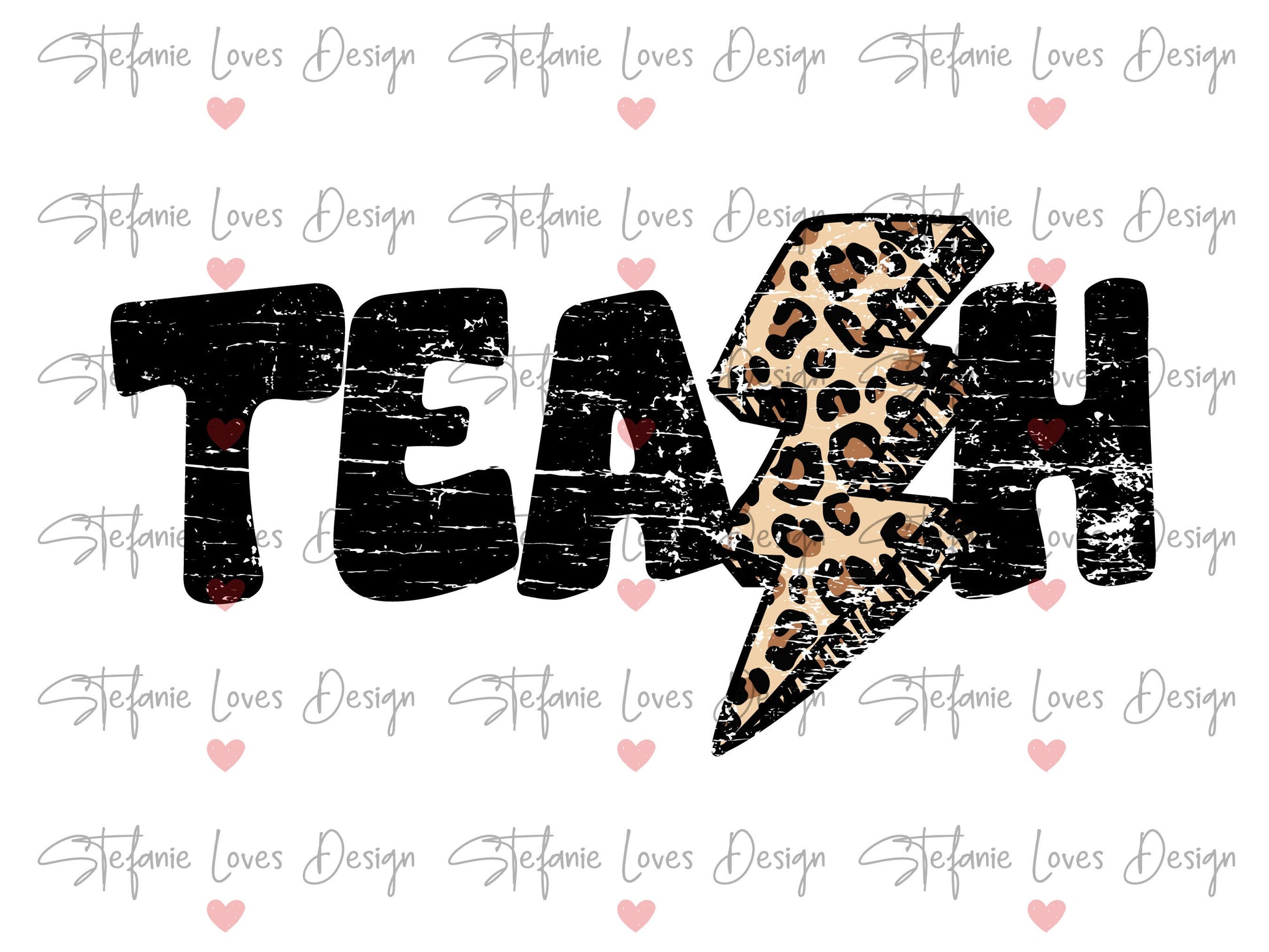Teach png, Teach, Distressed Lightning Bolt PNG, Leopard Lightning Bolt png, Teach Tee Design